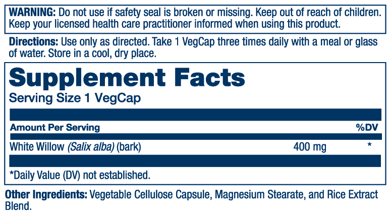 Respected for thousands of years, White Willow bark is known for its natural, supportive properties.The bark contains salicin, a naturally occurring compound that ancient cultures thought helped ease discomfort.