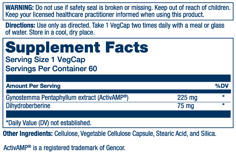 - Delivers 225 mg of clinically backed ActivAMP® jiaogulan to support AMPK activation, cellular metabolic regulation, and cellular energy*†††