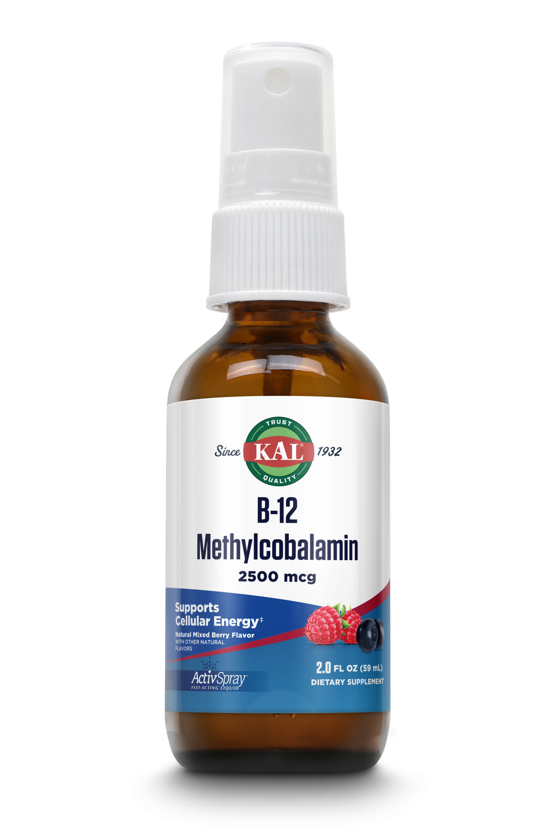 KAL B-12 Methylcobalamin ActivSpray delivers a potent 2,500 mcg dose (over 100,000% DV) in a convenient, mixed berry-flavored formula, making it as easy to take as it is effective.