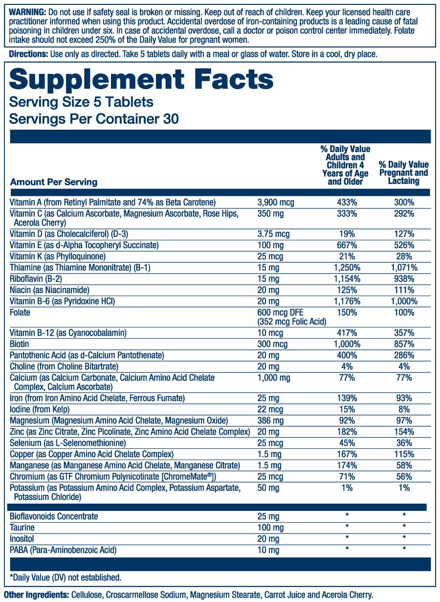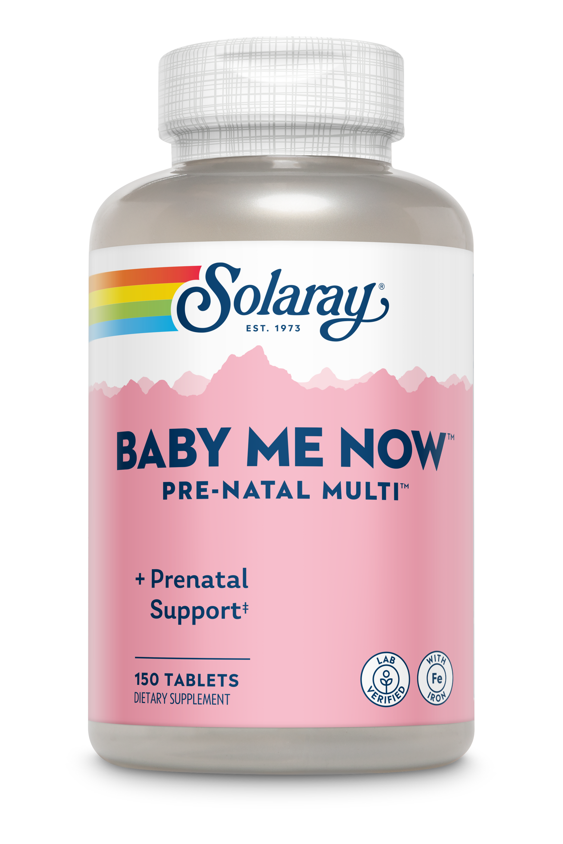 Whether you’re trying to conceive, already expecting, or breastfeeding, Solaray Baby Me Now™ Prenatal Multivitamin is formulated to provide the nutritional support both mom and baby need. While folic acid has been shown to support the healthy development of the fetal brain and spinal cord, added iron may help support your health while experiencing increased blood volume during pregnancy. With other vitamins and minerals from A to Z, our formula also contains 100% DV of calcium designed to help support mom’s healthy bones as well as the baby’s skeletal development.