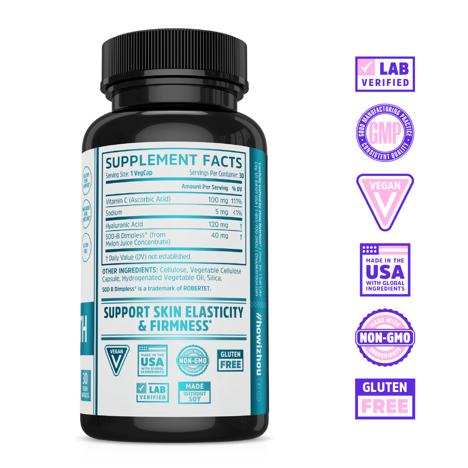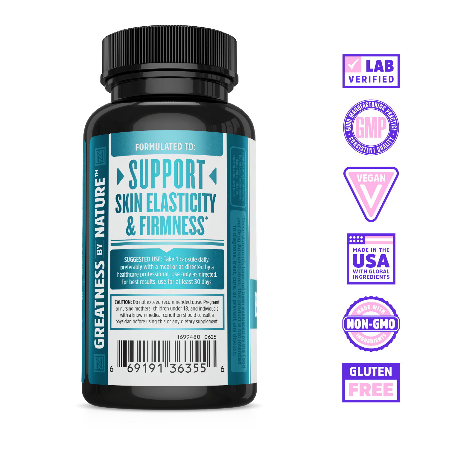 - Supports skin elasticity & firmness + maintains skin moisture with Hyaluronic Acid*