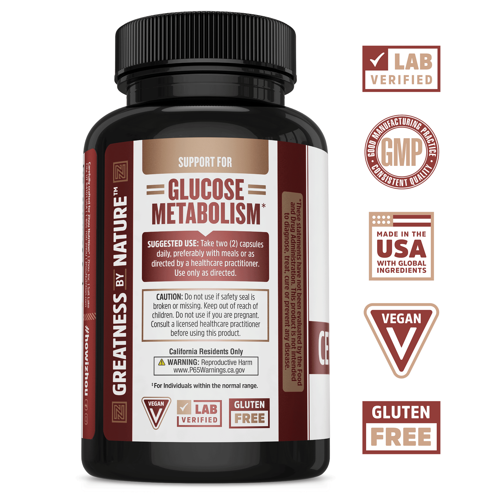 - Supports glucose metabolism with chromium*^