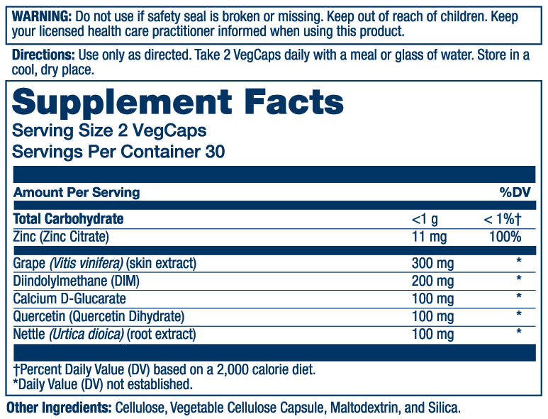 - With grape skin extract, calcium d-glucarate, quercetin, and nettle root extract for additional support*