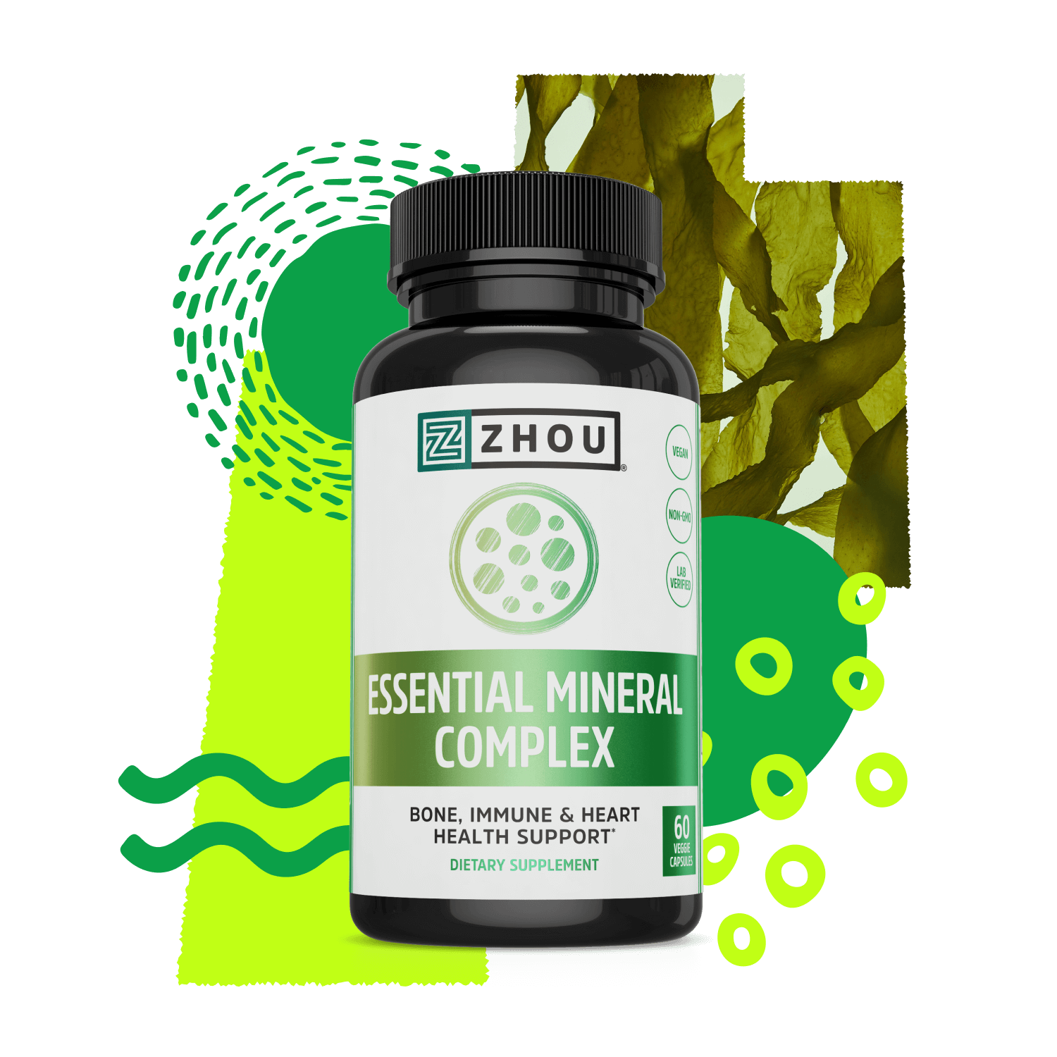 Rooted in nature, built for your bedrock of wellness. Zhou Essential Mineral Complex delivers a powerful blend of key minerals, selected by our experts, to support the body in all the right ways with just two easy vegan capsules per serving. Consider it your mineral must-have for keeping the whole system humming.