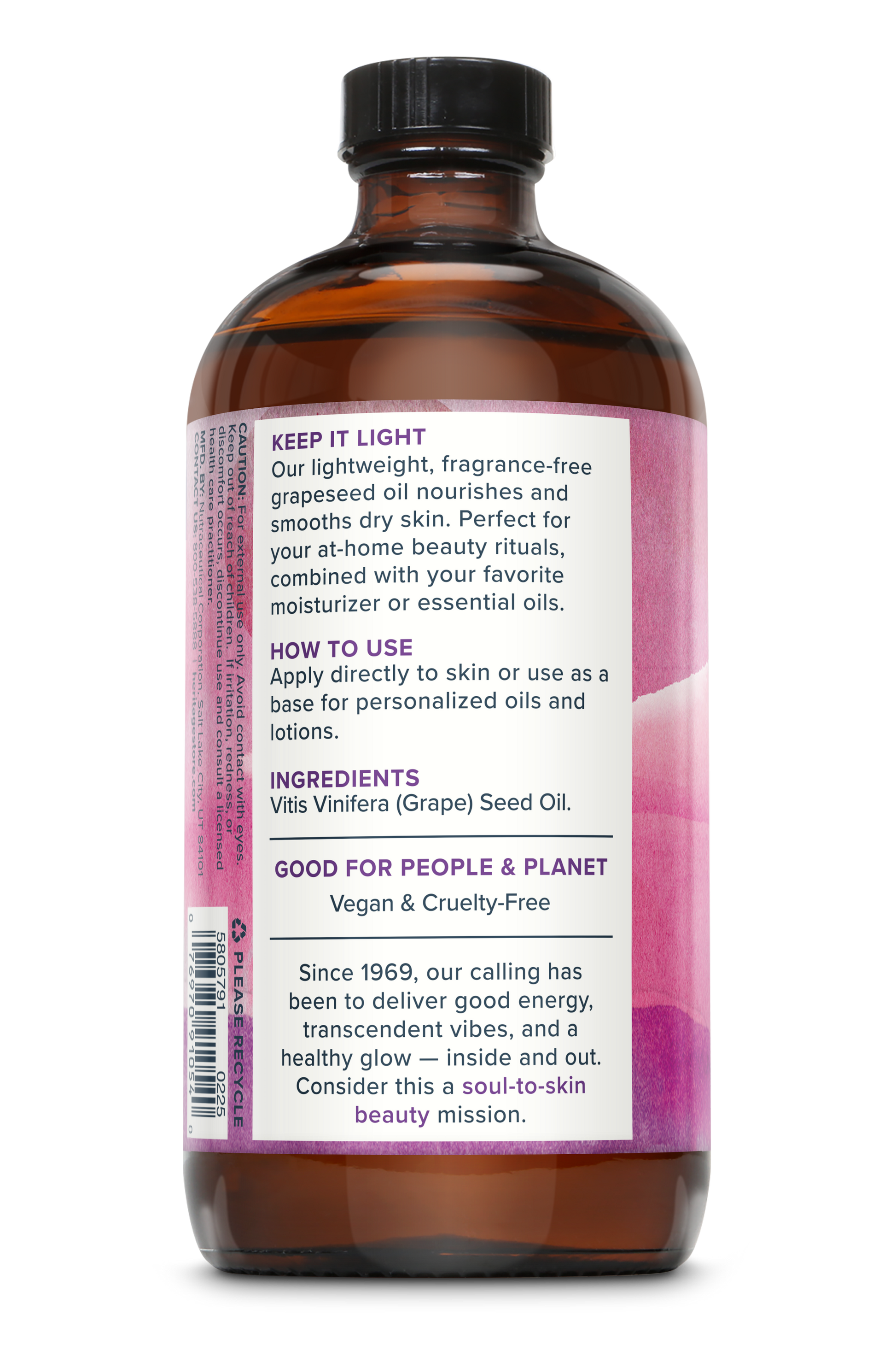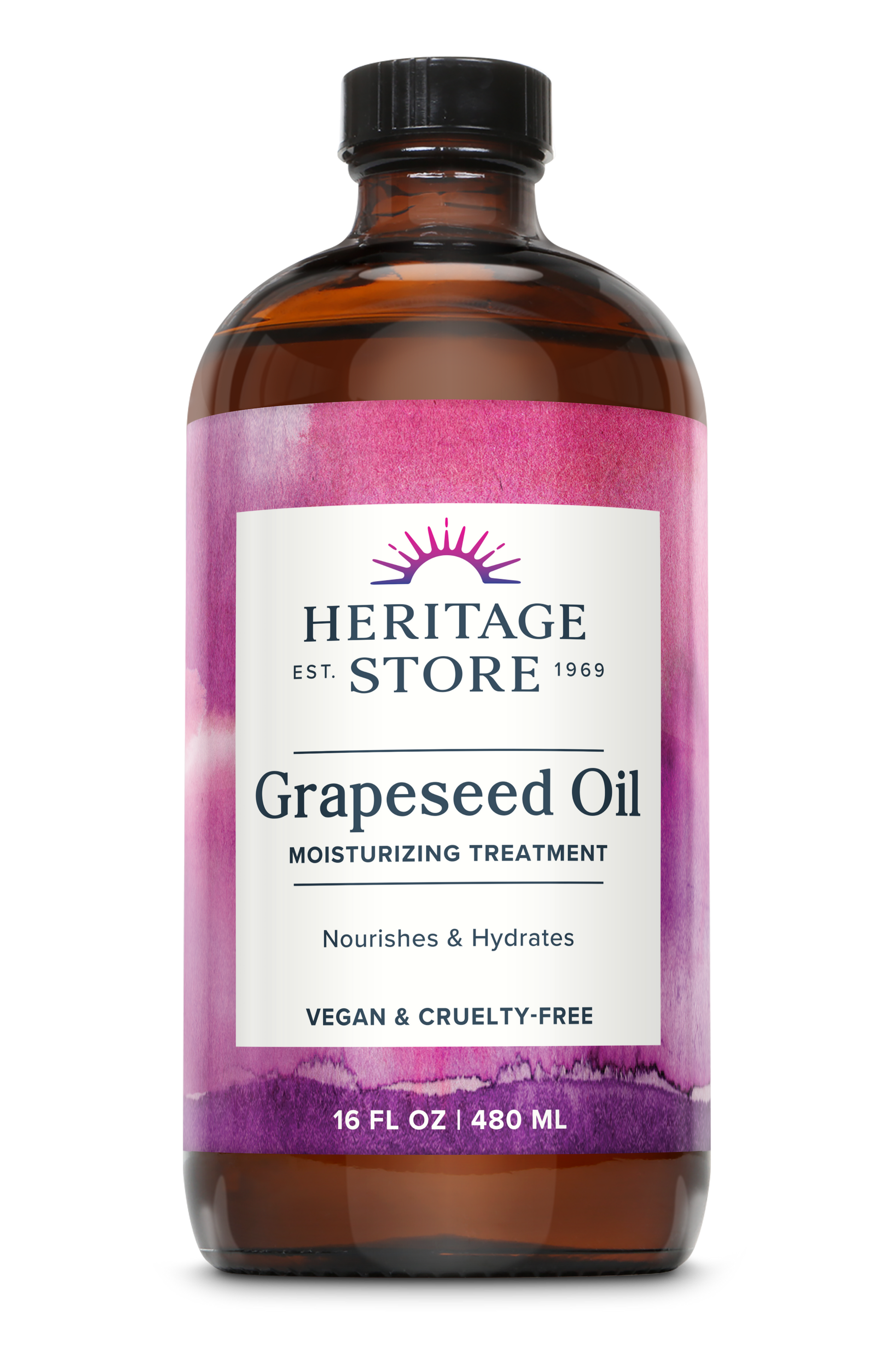 Tight and toned. Clear and conditioned. Bright and beautiful. Rich in linoleic acid, the rich, silky texture of Grapeseed Oil pairs perfectly with a soothing, moisturizing massage. Cold pressed and hexane free, treat your skin and hair to the pure power of Heritage Store Grapeseed Oil.