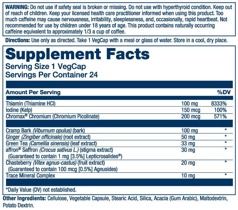 - Features thiamin for menstrual discomfort and PMS support, and iodine for thyroid support*