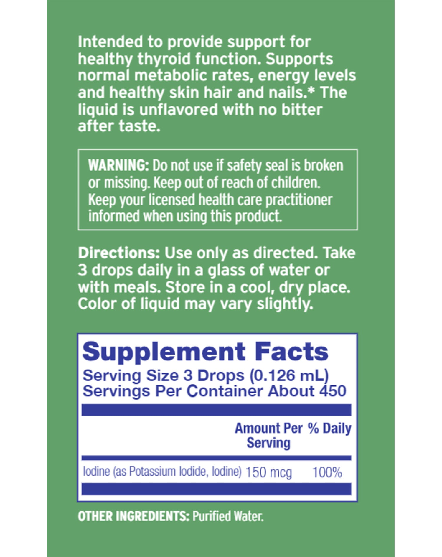 No need to swallow pills. Our premium liquid supplement goes to work fast and may help support focus, concentration and healthy mental and physical energy and stamina. Formulated for enhanced absorption, with no fillers or binders, our iodine drops also contain potassium iodide, designed to help the body better utilize the iodine.