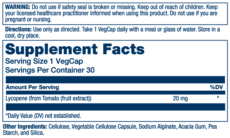 - Delivers 20 mg of lycopene for cardiovascular and prostate support*