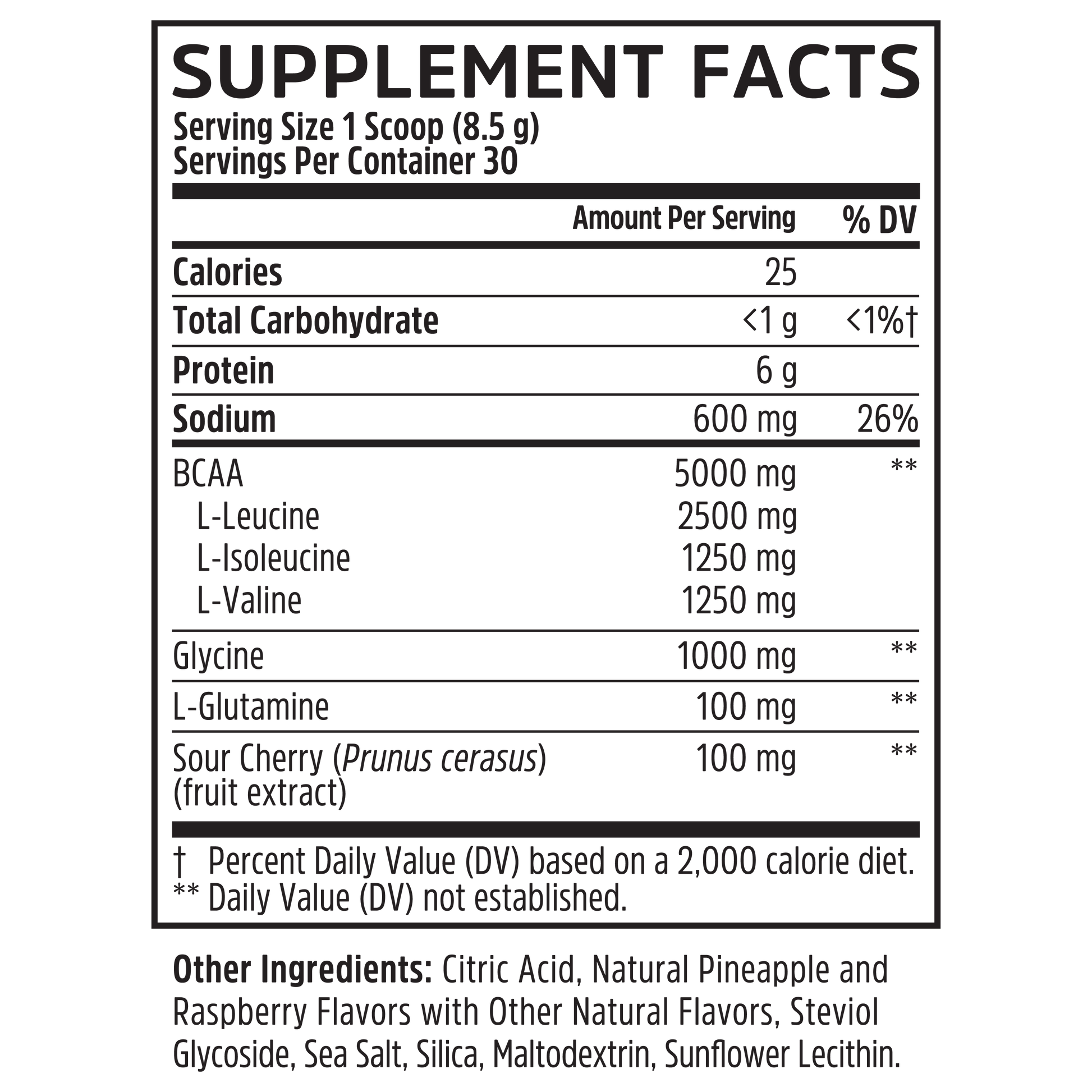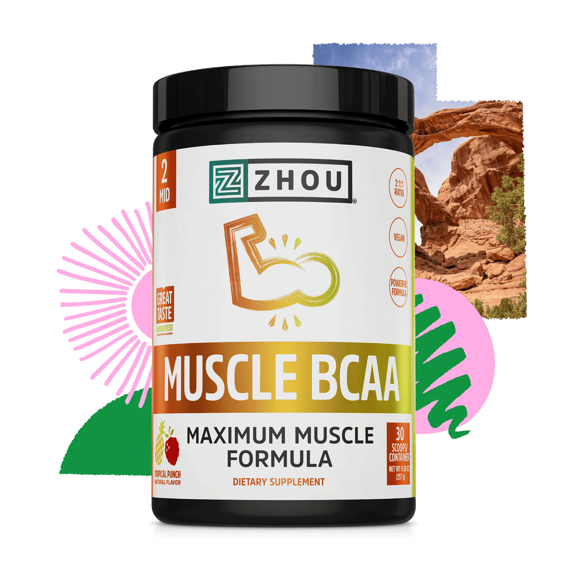 This one’s for the gym rats, the title chasers and the sweat connoisseurs. Muscle BCAA is a vegan 2:1:1 ratio BCAA formula designed to keep you fueled while supporting healthy muscle recovery. Amino acids are often sourced from poultry and duck feathers, but Muscle BCAA only uses high quality amino acids sourced from plants. We've also added 1 billion CFU/g of Bacillus coagulans for a probiotic boost, vitamin C and tart cherry for antioxidant support, and coconut water powder to hydrate and replenish. Just drink, recover and repeat.