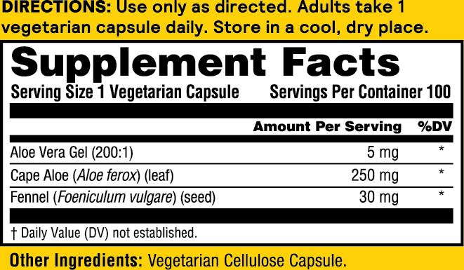 Embrace the power of plants. Nature’s Life Aloe Vera features 250 mg of Cape Aloe—a plant known for its naturally occurring vitamins, minerals, enzymes, and amino acids. We’ve also included a touch of Fennel Seed, a time-honored herb used in traditional wellness practices. This nutrient-rich formula supports whole-body balance and helps maintain healthy skin and elasticity, all in a straighforward vegetarian capsule.* It's simple, potent, and made to keep you feeling rooted and radiant.