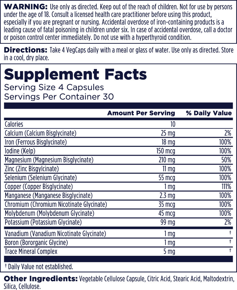 - 13 essential minerals + trace minerals